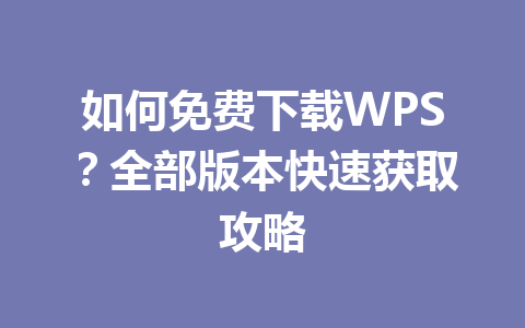 如何免费下载WPS?全部版本快速获取攻略